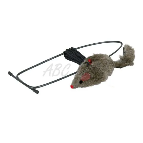 Șoarece din material pluș, datorită terminației din plastic poate fi agățat de cadru.