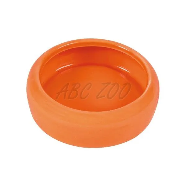 Castron colorat din ceramică pentru hrana rozătoarelor de talie mare, cu marginile arcuite.