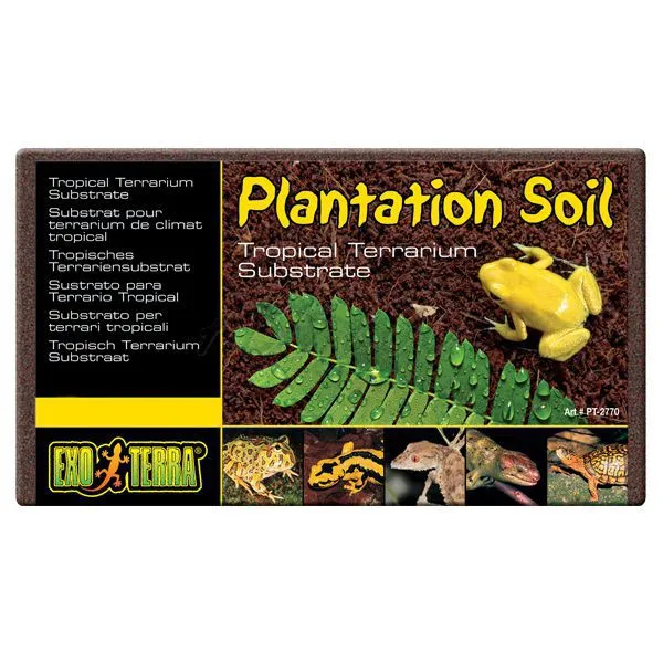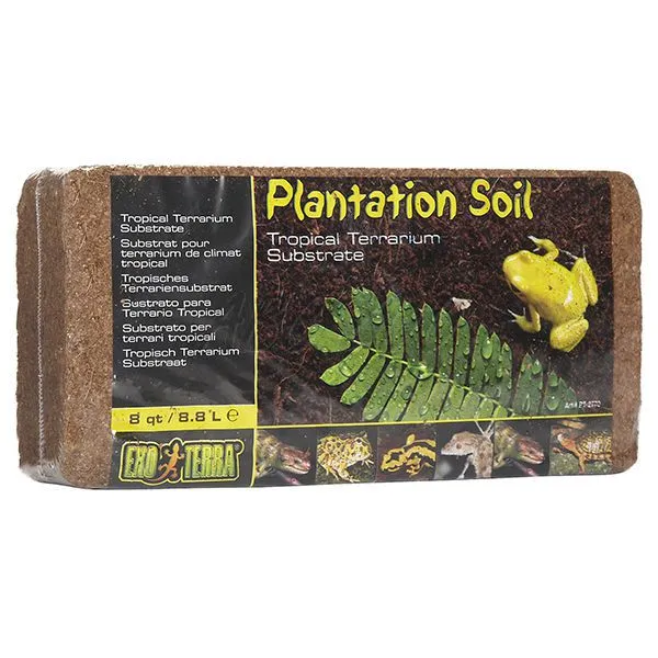 Creşte umiditatea în terariu, stimuleză comportamentul natural de îngropare şi săpare şi este un substrat nutritiv pentru plantele vii.Exo Terra Plantation Soil este făcut din fibră de cocos din ariile tropicale Asia.Creşte umiditatea şi serveşte broaştelor şi salamndrelor dar şi pentru animalele care sapă sau de vizuină.Acest substrat serveşte şi la plantele vii.