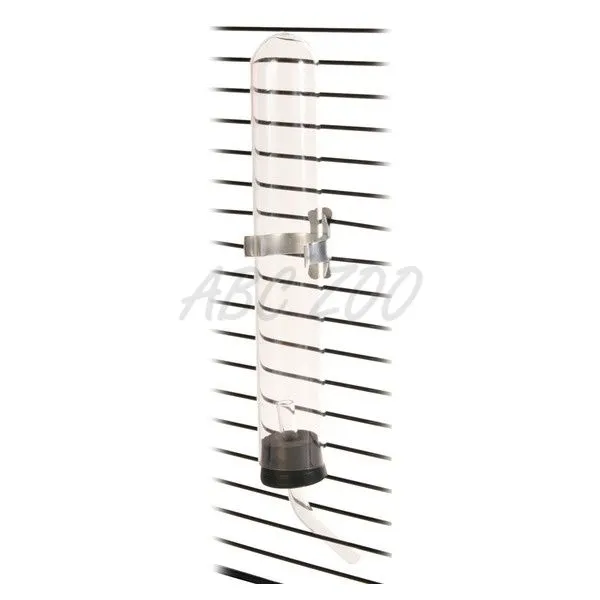 Adăpător transparent, confecţionat din sticlă, recomandat pentru hamsteri de talie mică, cu suport pentru cuşcă şi aderant pentru aşezarea pe suprafeţe netede.