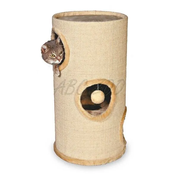 Fibre sisal, turnuleț cu trei etaje dotat cu jucării în interior și cu găuri pe partea laterală, suprafața interioară este căptușită cu material pluș, iar cea exterioară este sisal.