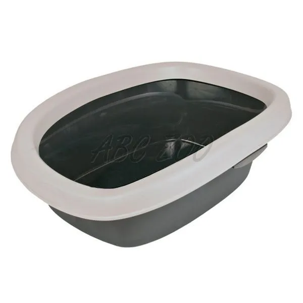 Litieră pentru pisici de culoare gri închis, cu margine gri deschis.