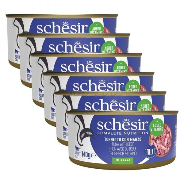 Schesir cat ton și vită în gelatină 6 x 140 g