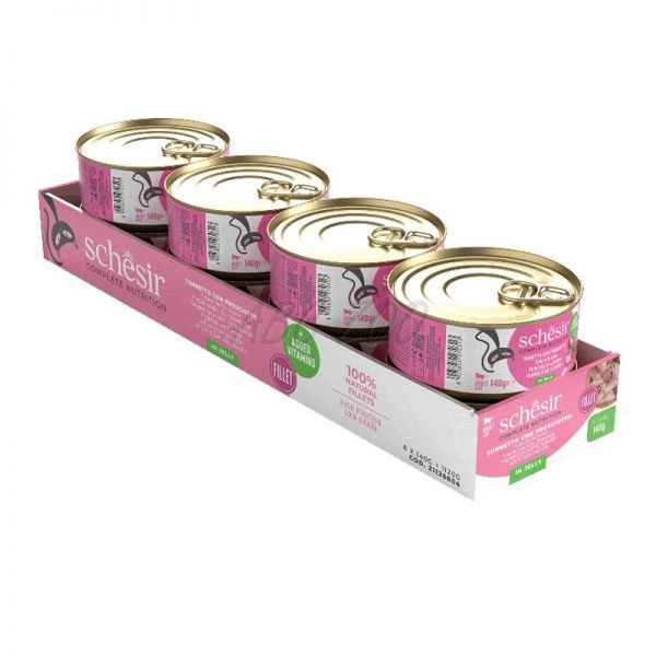 Schesir conservă, pentru pisicile adulte, cu ton și șuncă în gelatină.