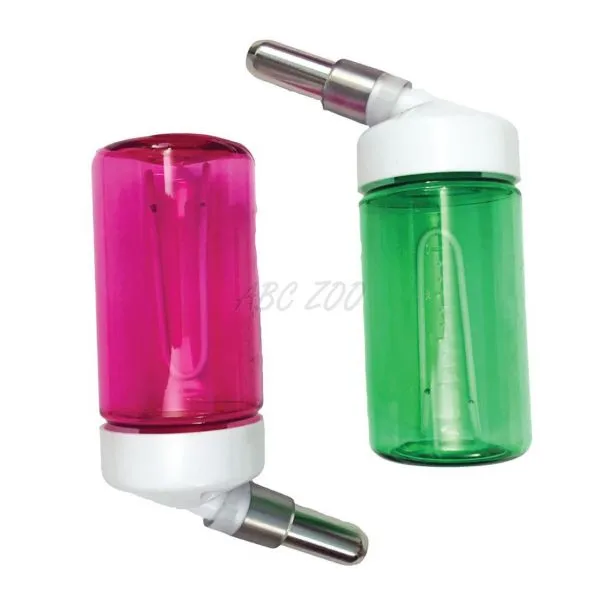 Bol de adăpat pentru rozătoare, fabricat din plastic transparent colorat.