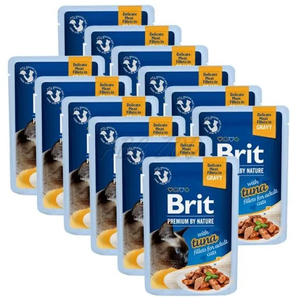 Pliculeț BRIT Premium Cat Delicate Fillets in Gravy with Tuna 12 x 85 g