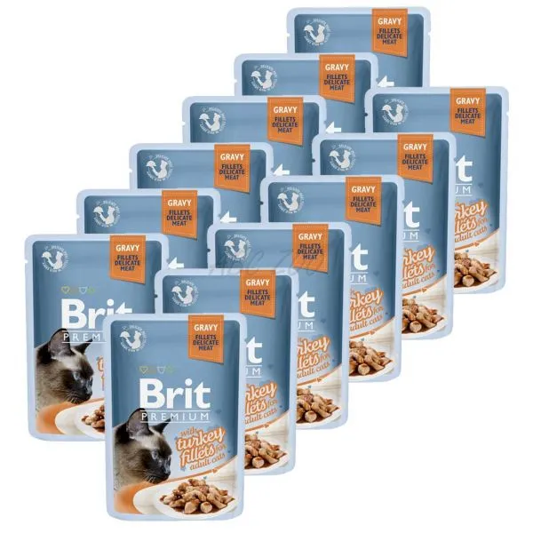 Pliculeț BRIT Premium Cat Delicate Fillets in Gravy with Turkey 12 x 85 g