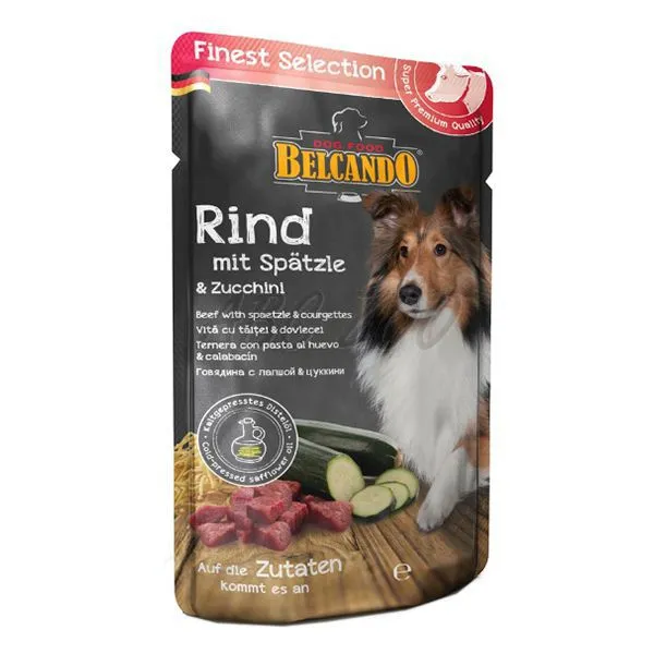 Plicul BELCANDO conține carne de vită cu tăiței și dovlecel potrivit pentru câini. Mai multe detalii