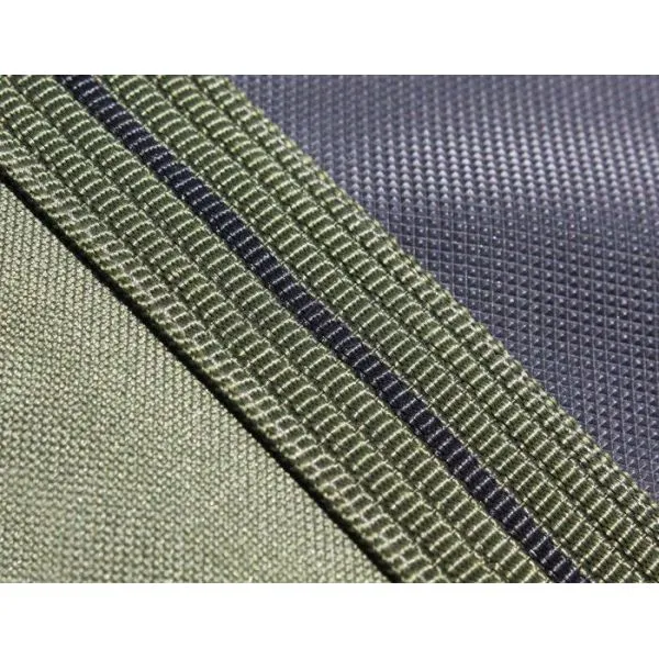 Tot materialul husei este fabricat din material rezistent care rezistă fără probleme la ploaie. Partea inferioară a husei este protejată suplimentar cu un material impermeabil, ceea ce permite aşezarea acestei părţi a husei pe pământ ud, sau chiar şi într-o baltă. Fermoarele uşoare cu cursor metalic, mânerul confortabil sau cordonul sentră agăţarea pe umăr a husei completează utilitatea practică a acestei huse.