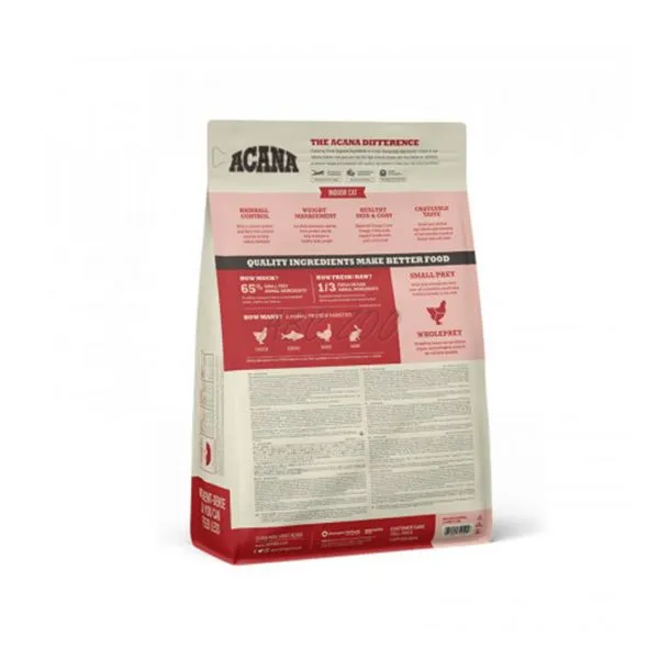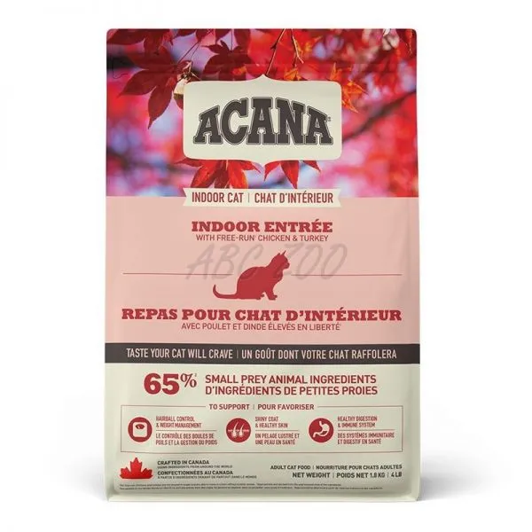 Acana este o hrană sănătoasă și echilibrată din carne de pui crescut la sol, curcan și iepure, pentru pisici care trăiesc mai mult în apartament.