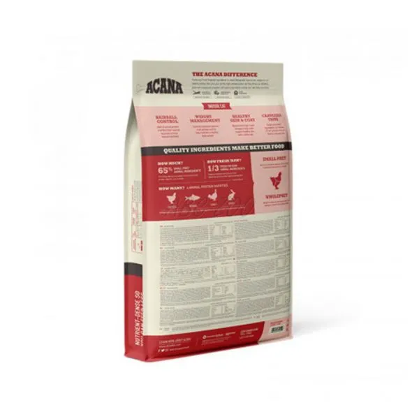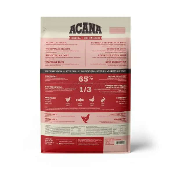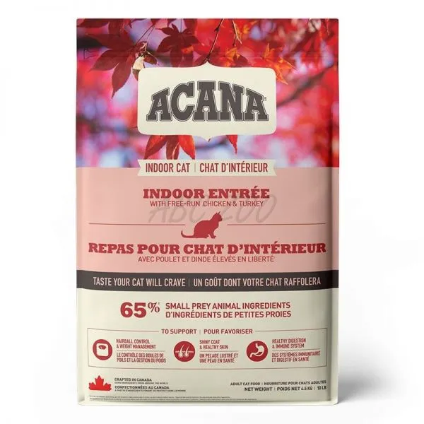 Acana este o hrană sănătoasă și echilibrată din carne de pui crescut la sol, curcan și iepure, pentru pisici care trăiesc mai mult în apartament.