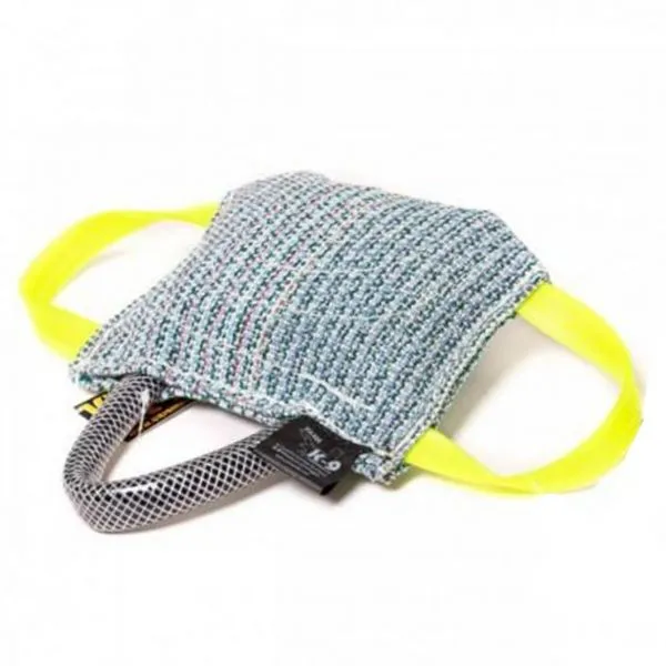 Jucărie de tras de calitate din bumbac și nailon, cu mânere extra rezistente la ambele capete și cu un tub lateral, pentru a putea fi întins de câine în timpul jocului sau antrenamentului.
