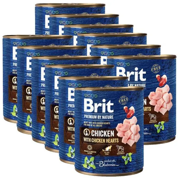Brit premium by Nature Conservă cu pui & inimi 12 x 800 g