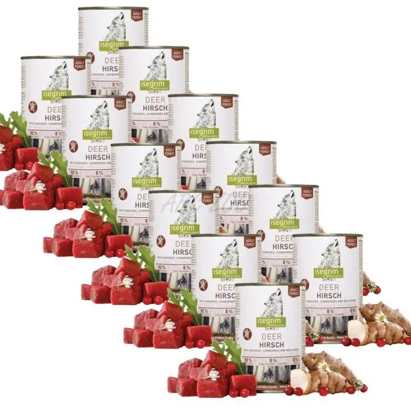 ISEGRIM Adult Forest: Cerb cu anghinare, merişoare și ierburi 12 x 400 g