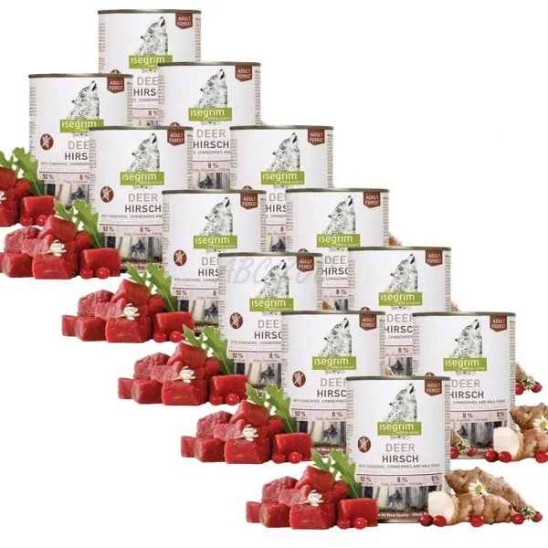 ISEGRIM Adult Forest: Cerb cu anghinare, merişoare și ierburi 12 x 800 g