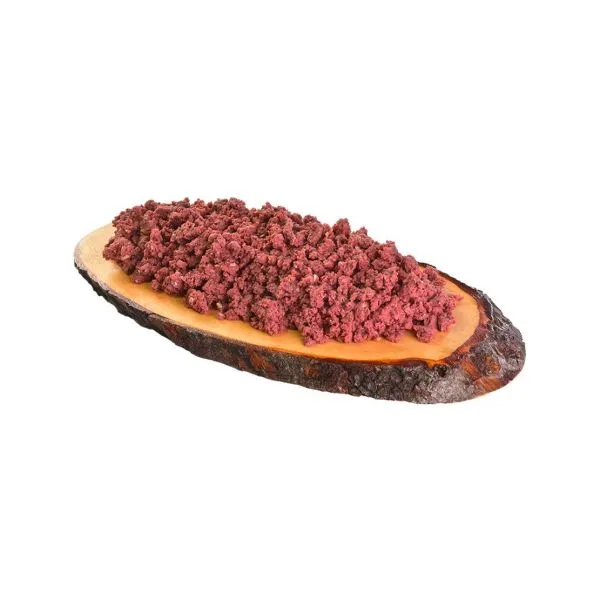 Ingrediente: 85 % carne și organe (59 % curcan, 26 % carne de vânat), 9 % supă, 4 % frunze de căpșuni, 1 % minerale, 1 % ulei din semințe de in
