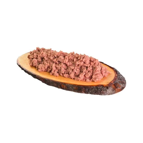 Ingrediente: 85 % carne și organe (59 % curcan, 26 % crap), 9 % supă, 4 % morcov negru, 1 % minerale, 1 % ulei din semințe de in