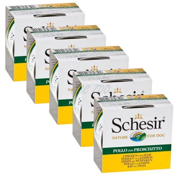 Schesir dog pui și șuncă în gelatină 5 x 150 g