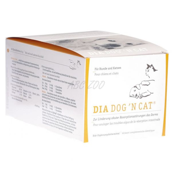 Dia-dog and cat sunt tablete masticabile folosite pentru câini și pisici cu indigestie și diaree.