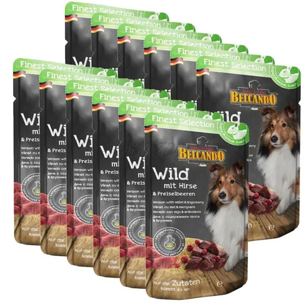 Plic BELCANDO pentru câini – carne de vânat cu mei și merișoare. Mai multe detalii