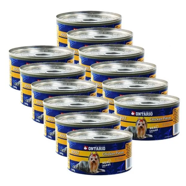 Conservă ONTARIO Adult pentru câini, bucăți de pui + pipote., 12 x 200g
