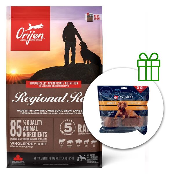 Orijen Regional Red Dog 11,4 kg + Rabbit Snack 500g GRATUIT