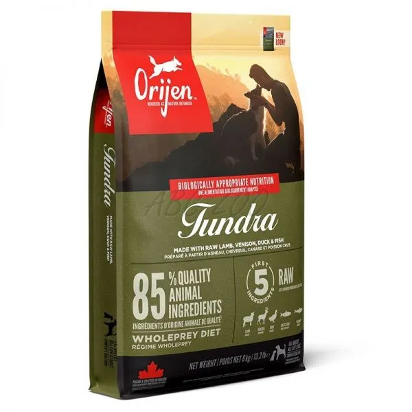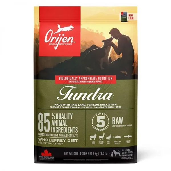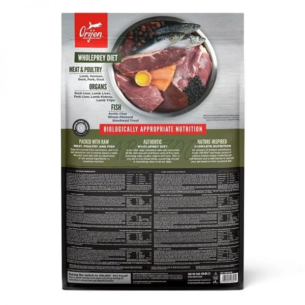Cățelușii de toate rasele sunt  carnivori și au nevoie de alimente bogate și variate în carne proaspătă, cu o  mai mică cantitate de fructe, fructe de pădure și iarbă. Orijen oferă toate avantajele produselor alimentare brute așa cum ar fi oferite de natura însăși. Este ușor uscată prin congelare pentru a păstra gustul original al ingredientelor.