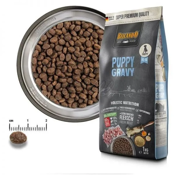 BELCANDO Puppy Gravy este o hrană completă, super premium, creată pentru cățelușii de toate rasele și pentru creșterea câinilor tineri.