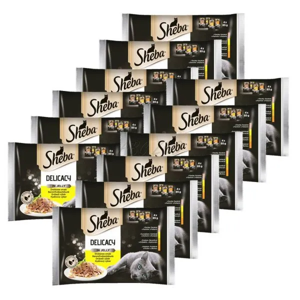 Sheba Delicacy este o selecție de pungi cu gelatină din păsări de curte pentru pisicile adulte.