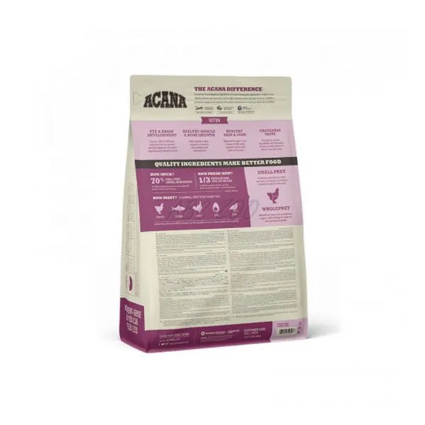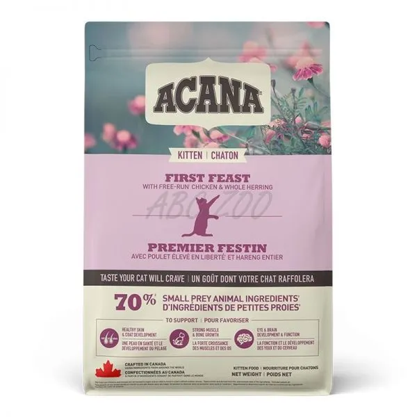 Acana este o hrană sănătoasă și echilibrată de pui crescut la sol și hering integral pentru puii de pisică.