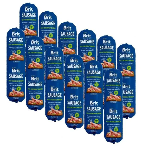 BRIT Cârnați cu pui și căprioară 12 x 800 g