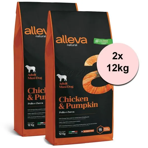 Alleva NATURAL dog chicken & pumpkin adult maxi 2 x 12 kg