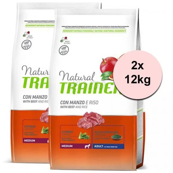 Trainer Natural Adult Medium, beef and rice 2 x 12kg