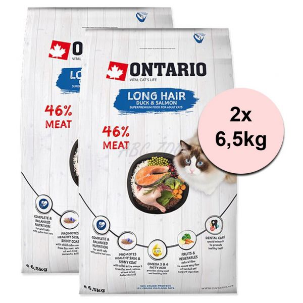 Ontario Cat Long Hair rață și somon 2 x 6,5 kg