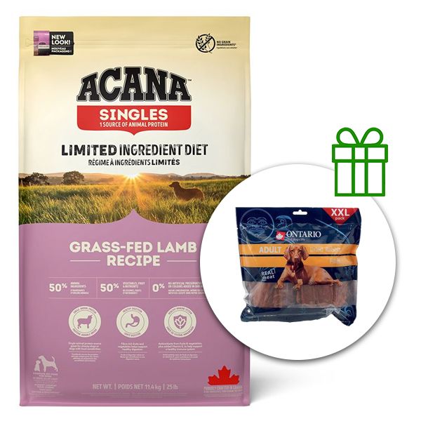 ACANA Singles Grass-Fed Lamb 11,4 kg + Rabbit Snack 500g GRATUIT