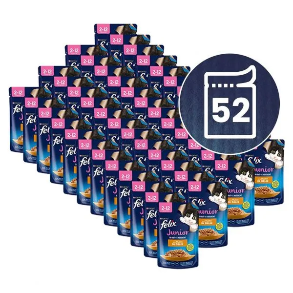 Pliculeț FELIX Junior Fantastic cu pui în gelatină 52 x 85 g