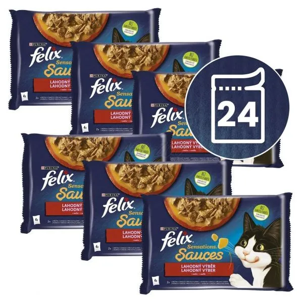 FELIX® Sensations® Sauces este o gamă de hrană irezistibilă realizată din ingrediente de înaltă calitate care miros și, bineînțeles, au gust delicios. Fiecare hrană FELIX Sensations Sauces conține bucăți fine pentru a satisface pisica, poate fi servită în diverse arome și cu diverse sosuri pentru un gust excepțional și aromă tentantă. În același timp reprezintă o sursă de acizi grași omega 6 și au combinația corectă de vitamine pentru a menține pisica plină de energie și gata pentru joacă! Este plină de bunătăți și va satisface 100% din nevoile zilnice ale pisicii atunci când este servită în mod corespunzător. Și asta nu este tot! FELIX Sensations Sauces sunt disponibile într-o gamă largă de arome irezistibile și sosuri! Așadar dacă sunteți norocoși și aveți o pisică ca elix, satisfaceți-i dragostea pentru diversitate în fiecare zi cu FELIX Sensations Sauces! FELIX este pur și simplu irezistibilă!