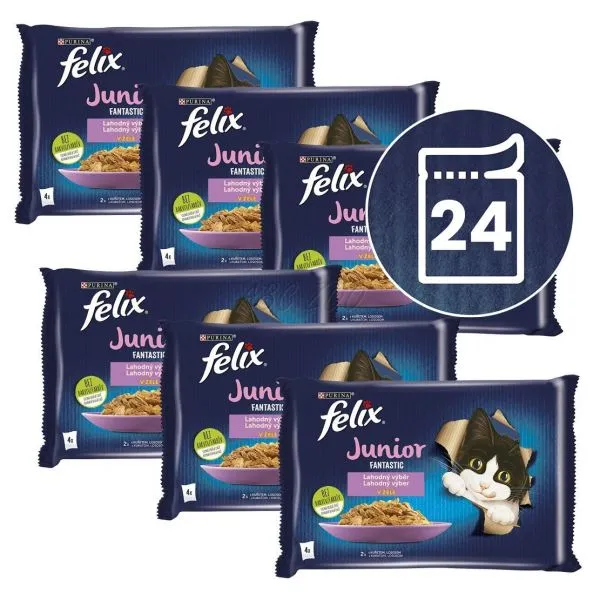 FELIX® Fantastic Junior este o gamă de hrană irezistibilă realizată din ingrediente de înaltă calitate care miros și, bineînțeles, au gust delicios. Fiecare hrană FELIX® Fantastic Junior conține bucăți fine pentru a satisface pisica, poate fi servită în diverse arome și cu diverse sosuri pentru un gust excepțional și aromă tentantă. În același timp reprezintă o sursă de acizi grași omega 6 și au combinația corectă de vitamine pentru a menține pisica plină de energie și gata pentru joacă! Este plină de bunătăți și va satisface 100% din nevoile zilnice ale pisicii atunci când este servită în mod corespunzător. Și asta nu este tot! FELIX® Fantastic Junior sunt disponibile într-o gamă largă de arome irezistibile și sosuri! Așadar dacă sunteți norocoși și aveți o pisică ca Felix, satisfaceți-i dragostea pentru diversitate în fiecare zi cu FELIX® Fantastic Junior! FELIX este pur și simplu irezistibilă!