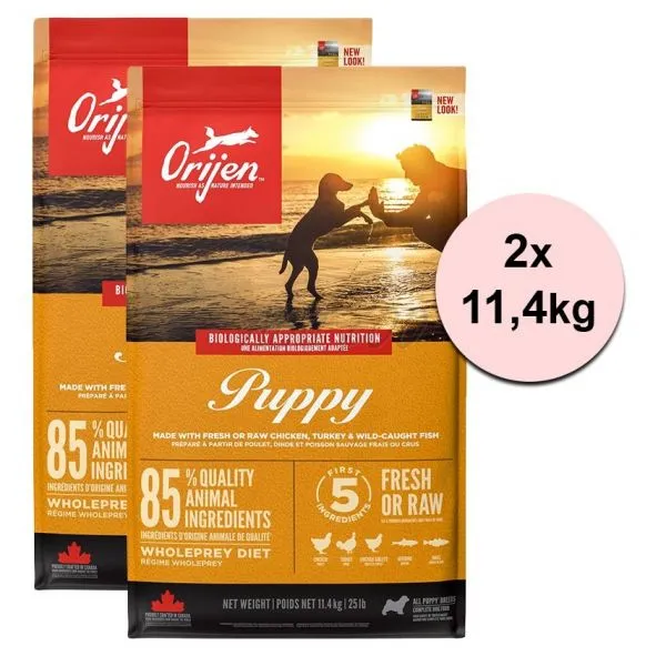 Orijen Puppy Dog este o hrană fără cereale, fabricată din cele mai bune și mai proaspete ingrediente canadiene, indicată pentru cățelușii din toate rasele și dimensiunile.