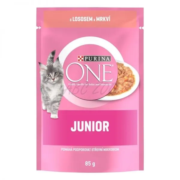 PURINA ONE JUNIOR mini filete cu somon și morcovi în suc 85 g