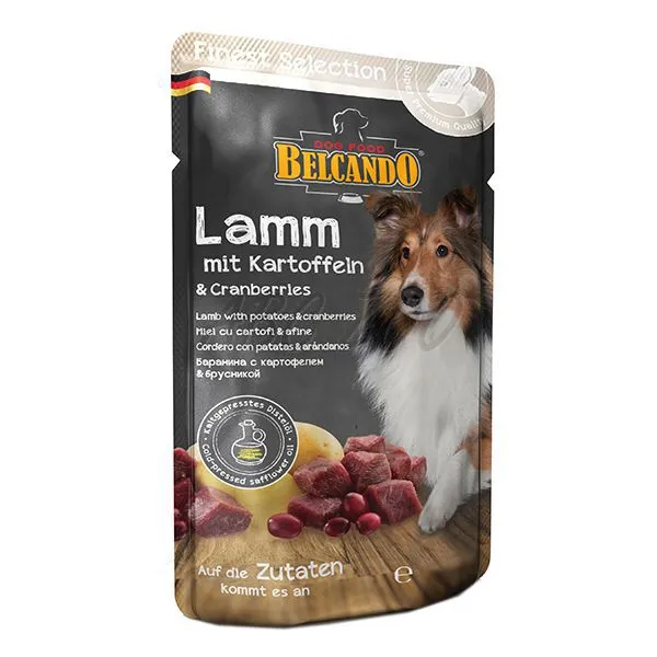BELCANDO-hrană la pungă pentru câini- carne de miel cu cartofi și merișoare.   Mai multe detalii