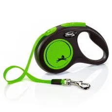 Lesă Flexi NEW NEON S de până la 15kg, cu bandă de 5m– verde