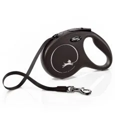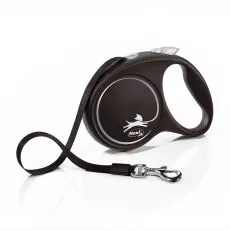 Lesă Flexi New Classic M pentru câini de până la 20kg, lungime coardă 5m - culoare neagră