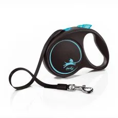 Lesă retractabilă, potrivită pentru câini cu o greutate de până la 20kg; lungime coardă 5m.