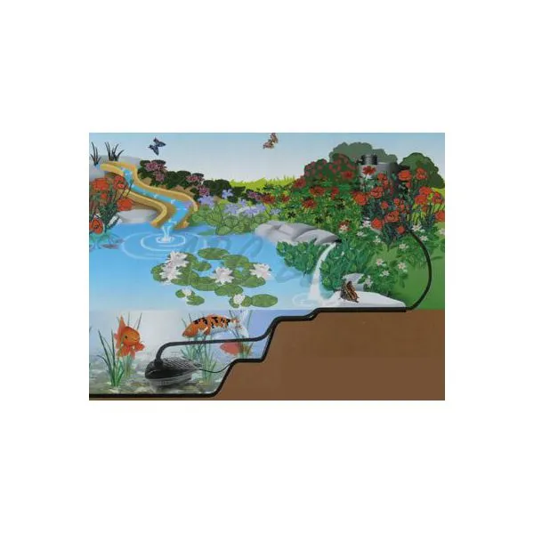 Noul capac format este şi un filtru împotriva particulelor mai mari, care ar putea să distrugă rotorul cu roată circulară, şi în acelaş timp asigură un loc stabil al pompei în iaz.Pompa este condusă de un motor asincronic cu protecţie împotriva supraîncălzirii şi uscării.Pompele ating un nivel mai mare de presiune şi un volum mai mare de apă pompată la consumarea redusă de energie electrică. Puteţi să creaţi fântâni şi cascade cu aceste pompe.