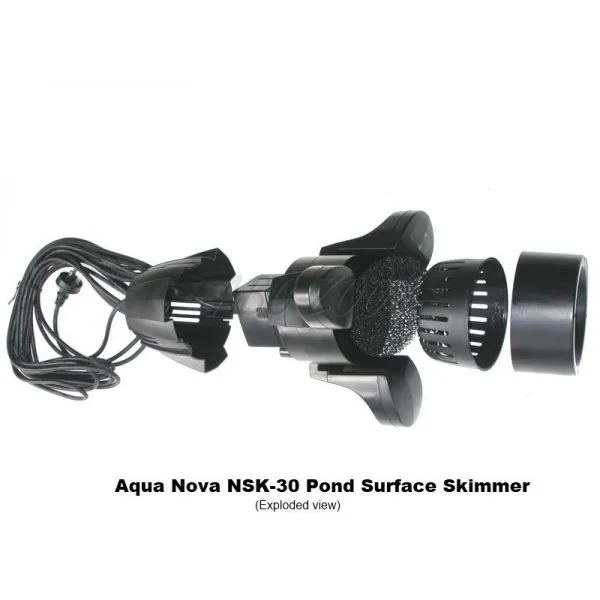 Dispozitivul plutitor Aquanova NSK 30 este făcut pentru îndepărtarea mecanică a impurităţilor plutitoare ( frunze căzute,iarbă,polen şi alte impurităţi micuţe) dintr-un iaz,înainte ca acestea să cadă la fundul iazului şi să îl polueze.După ce aceste impurităţi sunt prinse în dispozitiv, puteţi să le îndepărtaţi prin simpla curăţare a coşului.Skimmer Aquanova deja conţine o pompă, care este construită în partea de jos.Este echipat cu 3 flotoare pentru o mai bună stabilitate pe suprafaţa apei.