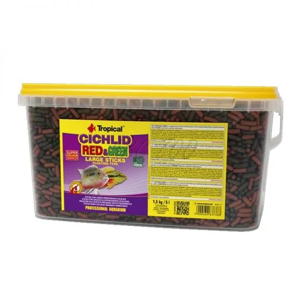 TROPICAL Cichlid Red/Green Large Sticks eleség sügéreknek, 5L/1,8kg
