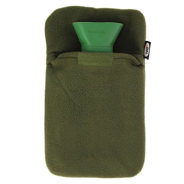 Sticlă compactă de apă fierbinte de litru cu ambalaj matlasat din lână kaki, care oferă căldură plăcută și căldură în timpul nopților reci.