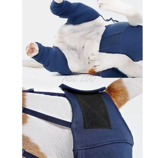 Husa pe ambele picioare din spate a câinelui pentru acoperirea și protecția rănilor și bandajelor, îmbrăcămintea câinelui nu restricționează și îi permite libera circulație.