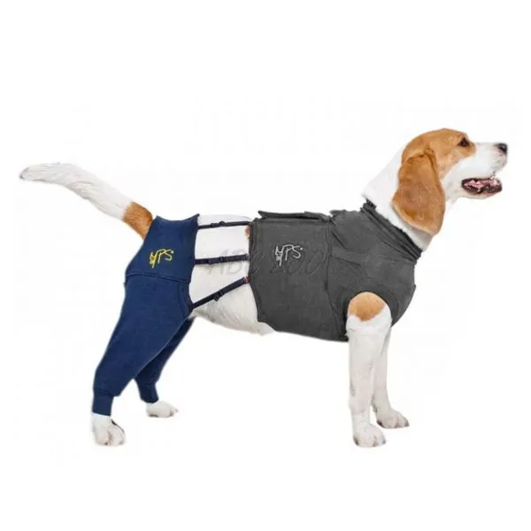 Husa pe ambele picioare din spate a câinelui pentru acoperirea și protecția rănilor și bandajelor, îmbrăcămintea câinelui nu restricționează și îi permite libera circulație.